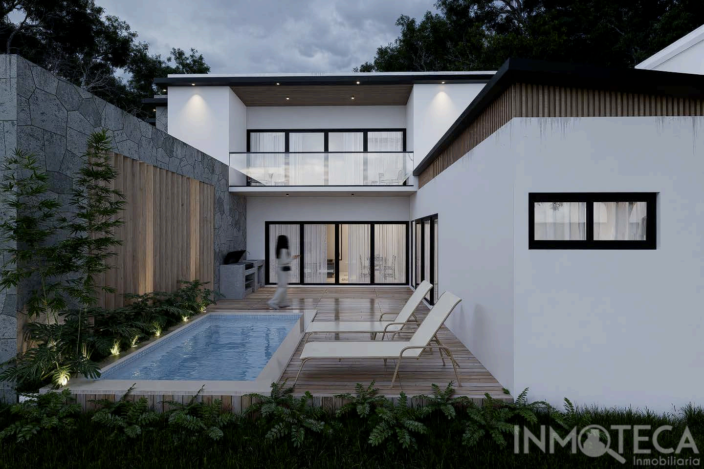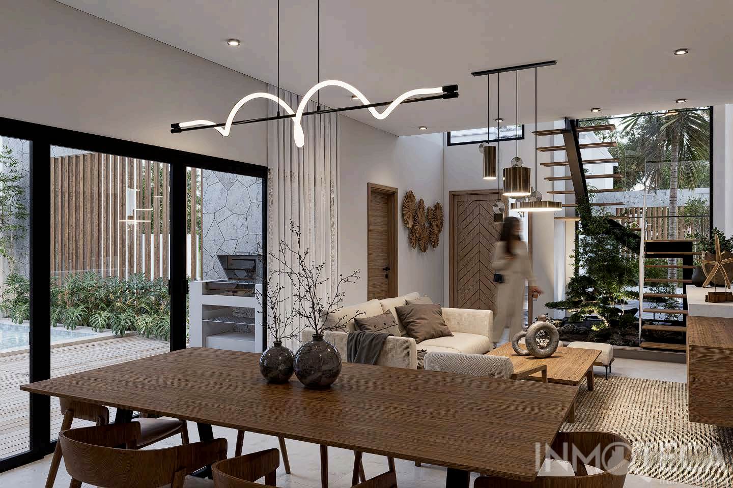 Each villa features a clever two-level layout to maximize space and privacy: