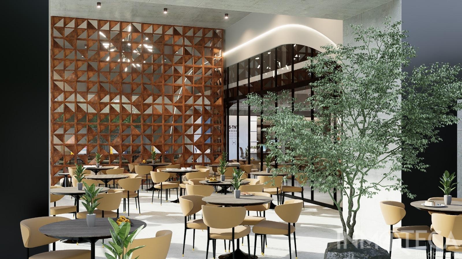 Restaurants on the first level and on the rooftop.