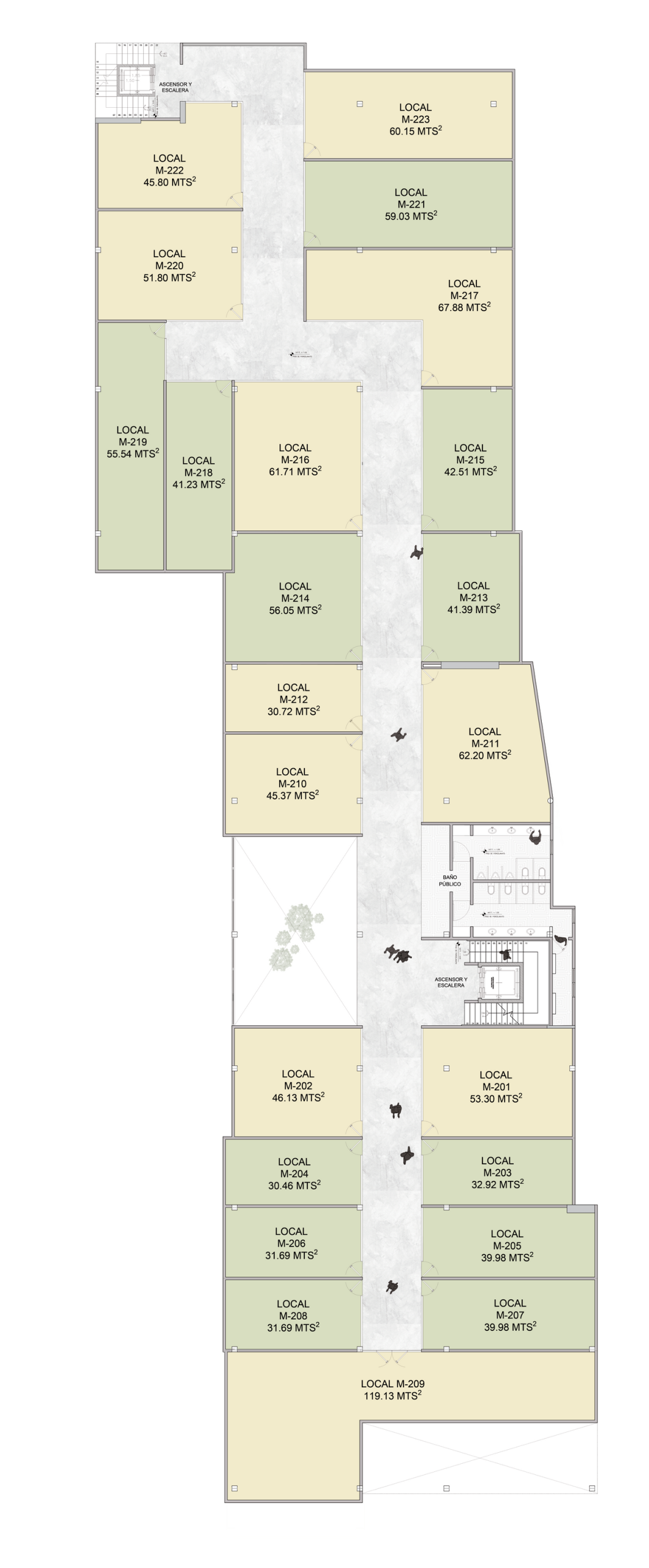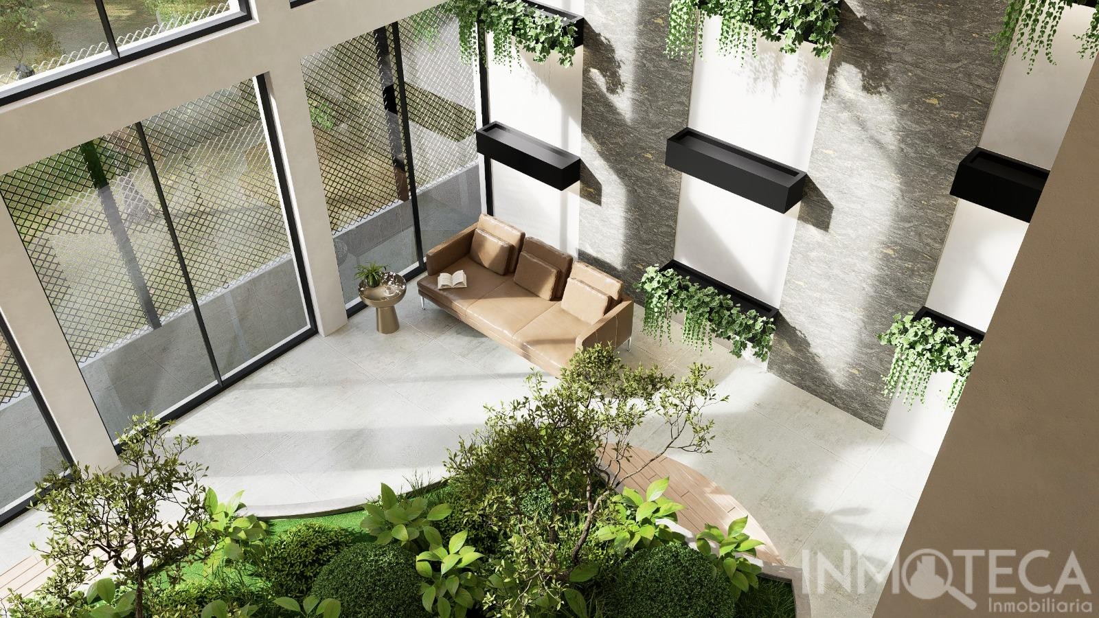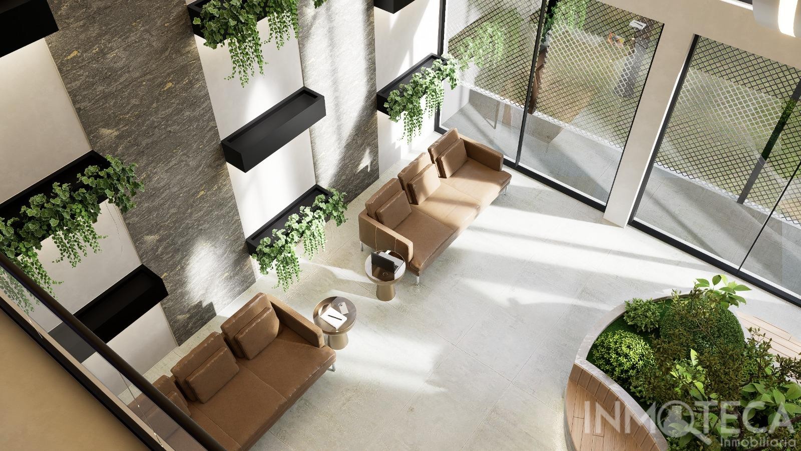 Heated common area and double-height interior garden.