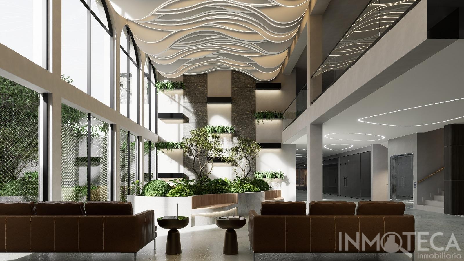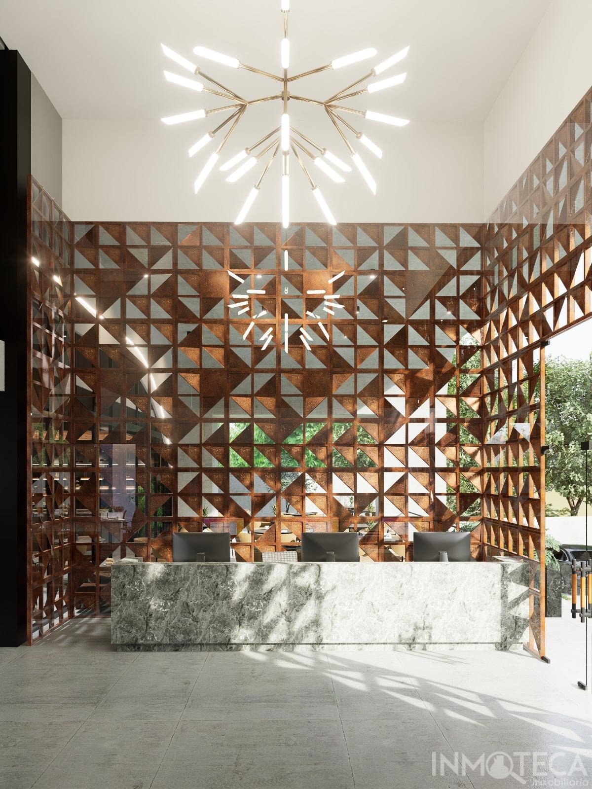 Business lobby with high quality finishes and furnished.