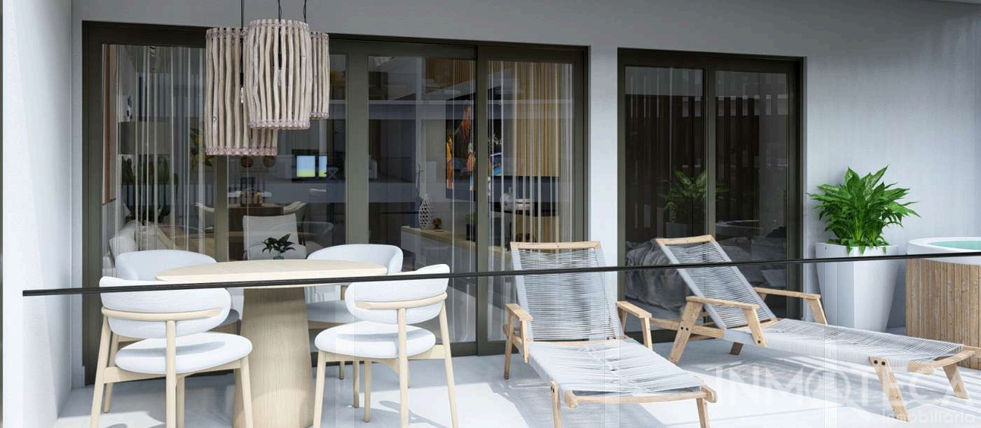 The project features 36 apartments distributed in 2 blocks of 3 levels, with 6 apartments per floor and 1 and 2-bedroom typologies. Each unit includes 1 parking space. Third-level apartments boast an independent semi-covered terrace with a bathroom and kitchen.