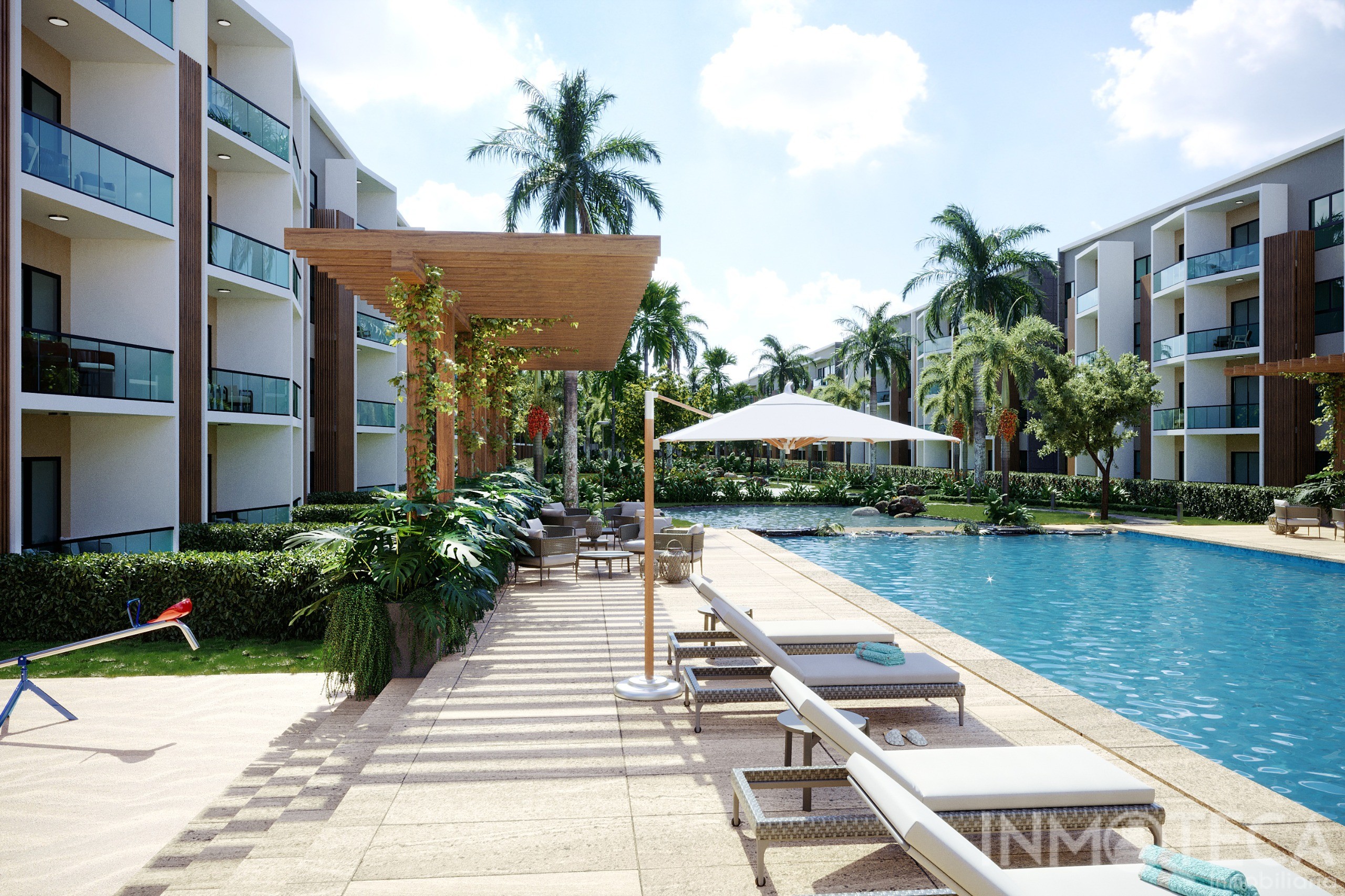 Áreas verdes, jacuzzi y zonas de recreación